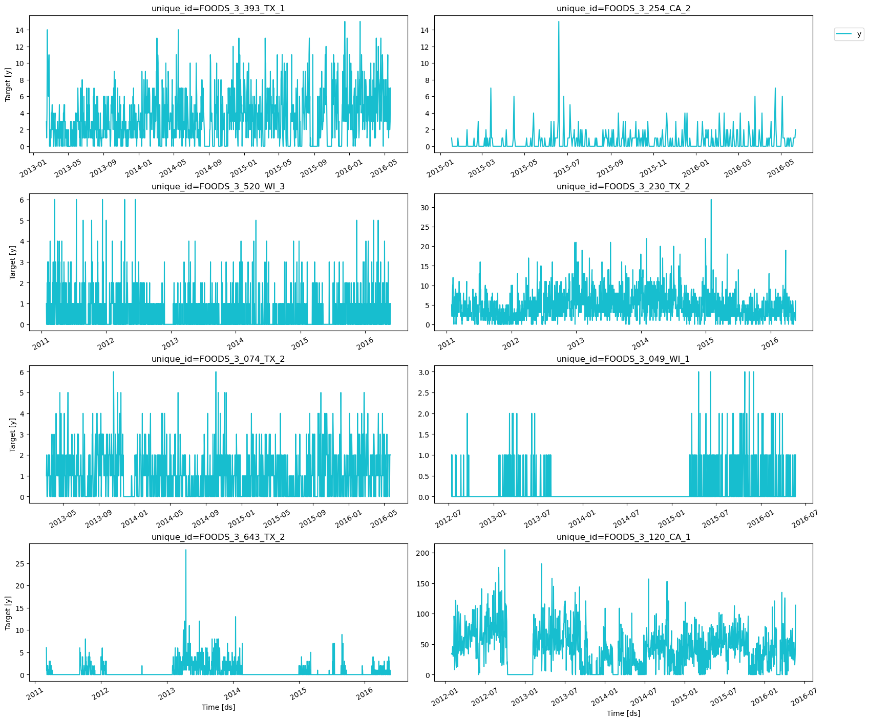 In this notebook, you will make forecasts for the M5 dataset choosing the best model for each time series using cross validation.Statistical, Machine Learning, and Neural Forecasting Methods In this tutorial, we will explore the process of forecasting on the M5 dataset by utilizing the most suitable model for each time series. We’ll accomplish this through an essential technique known as cross-validation. This approach helps us in estimating the predictive performance of our models, and in selecting the model that yields the best performance for each time series. The M5 dataset comprises of hierarchical sales data, spanning five years, from Walmart. The aim is to forecast daily sales for the next 28 days. The dataset is broken down into the 50 states of America, with 10 stores in each state. In the realm of time series forecasting and analysis, one of the more complex tasks is identifying the model that is optimally suited for a specific group of series. Quite often, this selection process leans heavily on intuition, which may not necessarily align with the empirical reality of our dataset. In this tutorial, we aim to provide a more structured, data-driven approach to model selection for different groups of series within the M5 benchmark dataset. This dataset, well-known in the field of forecasting, allows us to showcase the versatility and power of our methodology. We will train an assortment of models from various forecasting paradigms: StatsForecast