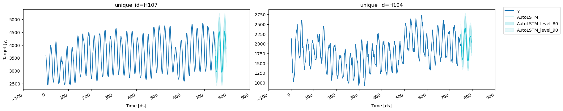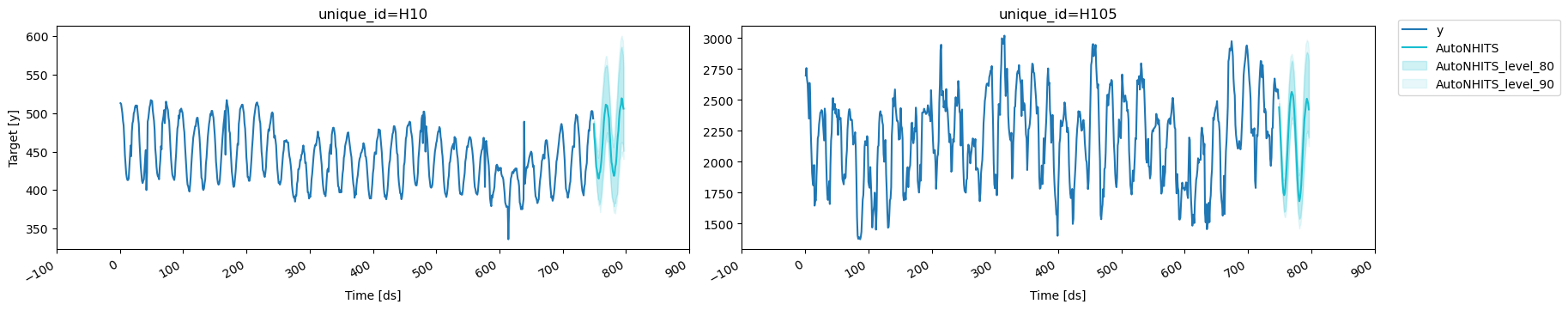 h: forecasting horizon.loss: training and validation loss fromneuralforecast.losses.pytorch.config: hyperparameter search space. IfNone, theAutoclass will use a pre-defined suggested hyperparameter space.search_alg: search algorithmnum_samples: number of configurations explored.