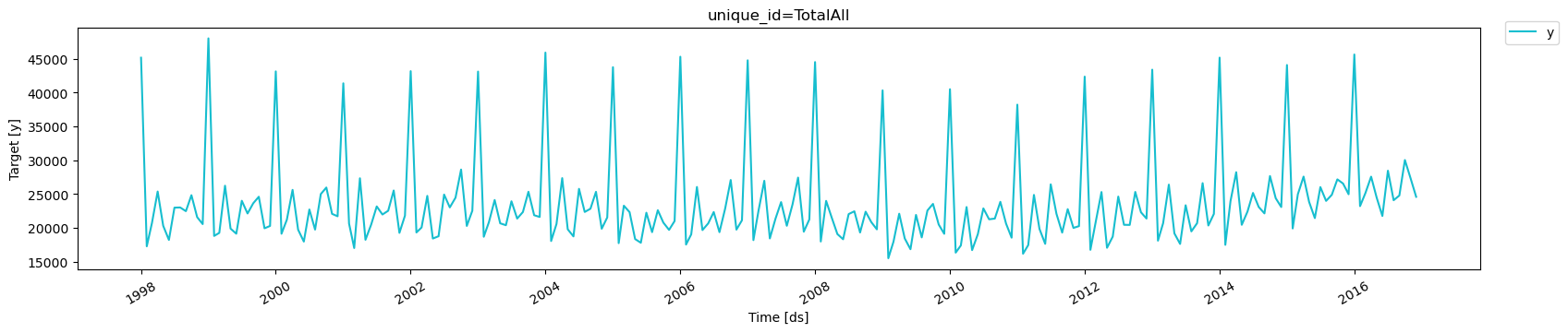 We compare against AutoARIMA, a well-established traditional forecasting method from the StatsForecast package, for which we reconcile the forecasts using HierarchicalForecast.BottomUp and MinTrace