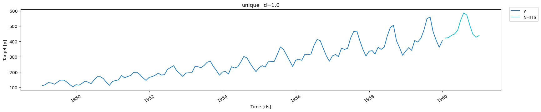 forecast AirPassenger with the core.NeuralForecast.predict function.