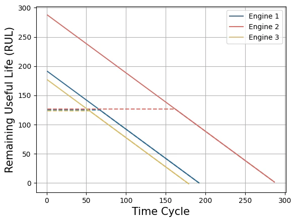 NeuralForecast methods are capable of addressing regression problems involving various variables. The regression problem involves predicting the target variable based on its lags , temporal exogenous features , exogenous features available at the time of prediction , and static features . The task of estimating the remaining useful life (RUL) simplifies the problem to a single horizon prediction , where the objective is to predict based on the exogenous features and static features . In the RUL estimation task, the exogenous features typically correspond to sensor monitoring information, while the target variable represents the RUL itself.4. Evaluate Predictions