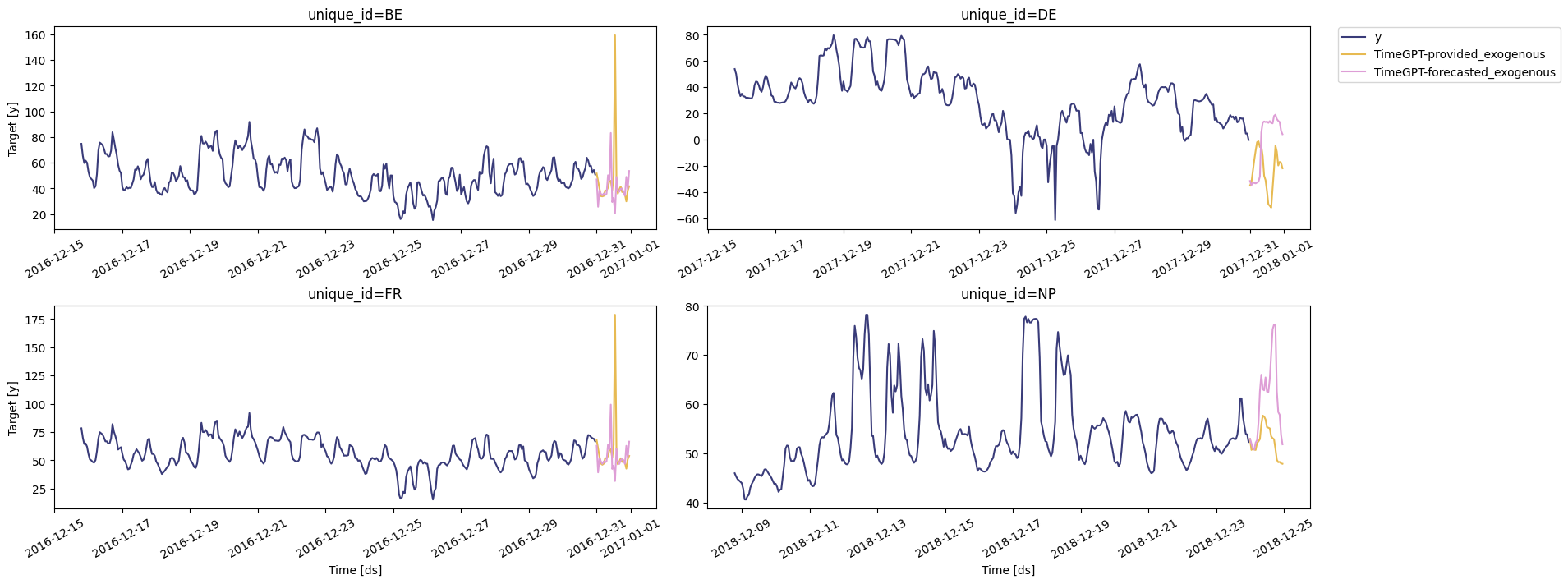 In the example above, we just loaded the future exogenous variables. Often, these are not available because these variables are unknown. We can also make forecasts using only historic exogenous variables. This can be done by adding thehist_exog_list argument with the list of