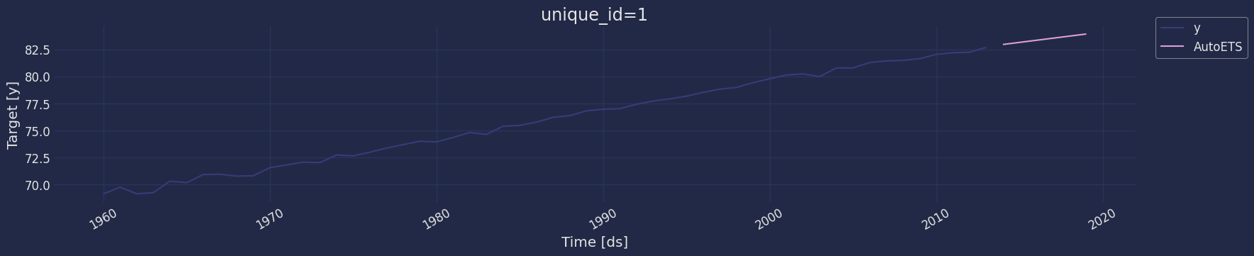 Access fitted Exponential Smoothing insample predictions.unique_id | ds | y | AutoETS | |