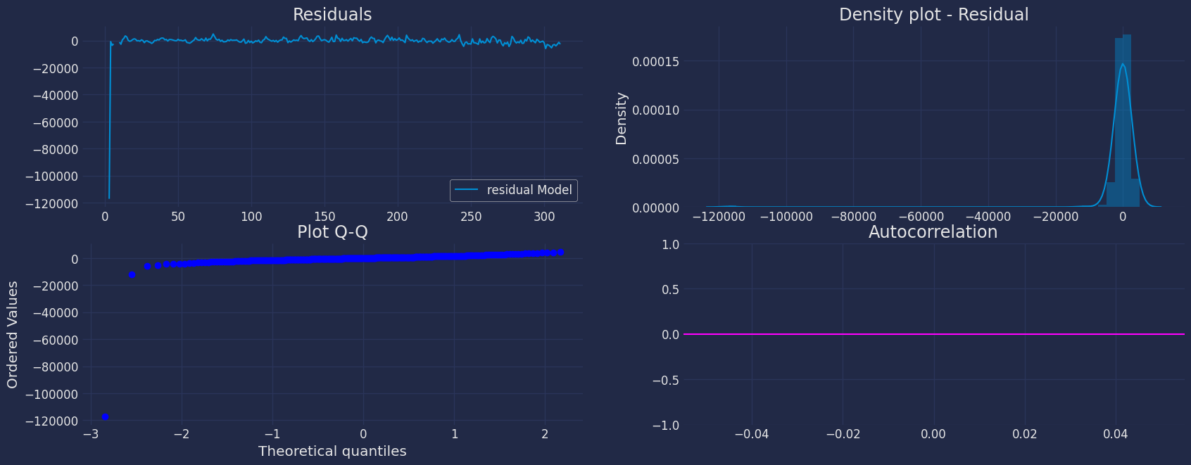 Now we are going to evaluate our model with the results of the predictions, we will use different types of metrics MAE, MAPE, MASE, RMSE, SMAPE to evaluate the accuracy.metric | AutoRegressive | |