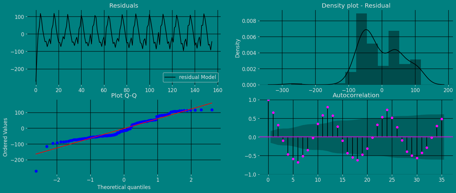 Now we are going to evaluate our model with the results of the predictions, we will use different types of metrics MAE, MAPE, MASE, RMSE, SMAPE to evaluate the accuracy.unique_id | metric | OptimizedTheta | |