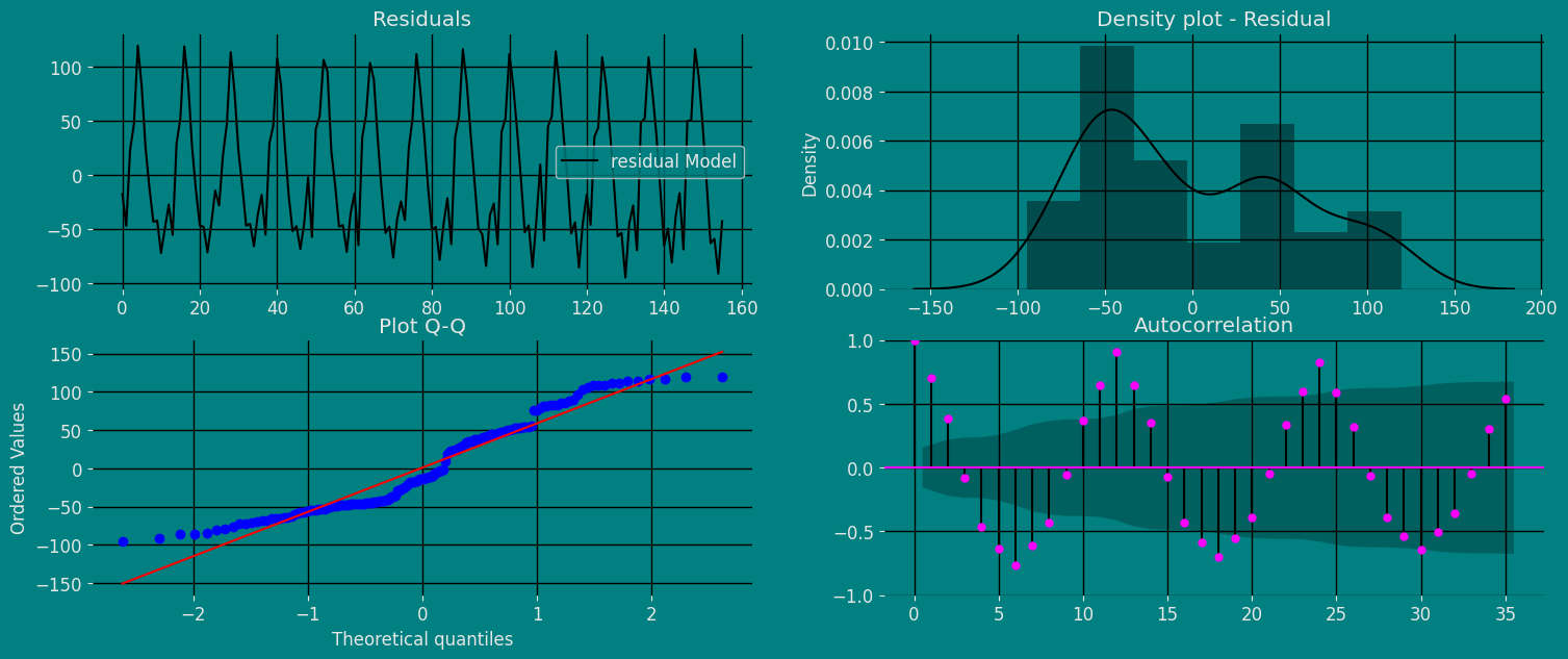 Now we are going to evaluate our model with the results of the predictions, we will use different types of metrics MAE, MAPE, MASE, RMSE, SMAPE to evaluate the accuracy.unique_id | metric | Theta | |