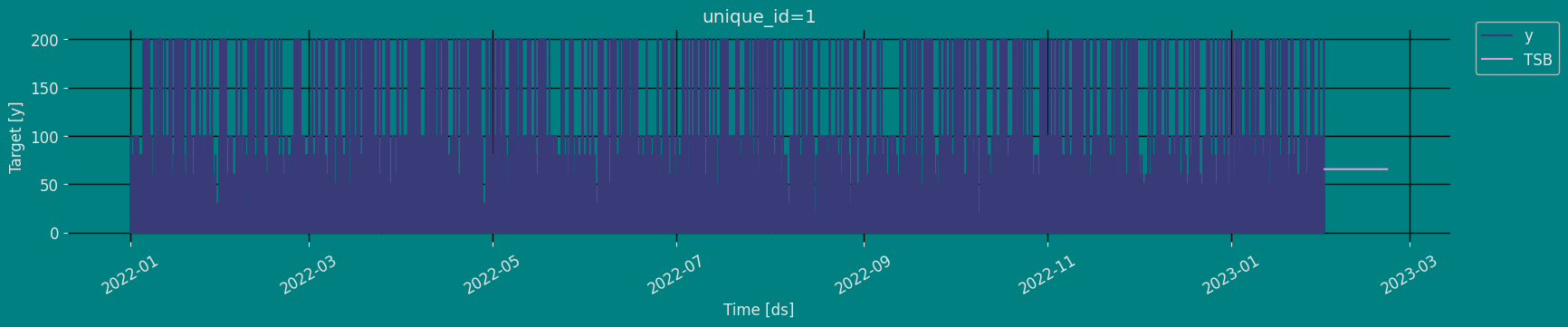 - Handling data with many zeros: The TSB model can efficiently handle time series data with many zeros, which are common in intermittent demand. The model properly considers these zeros in the forecasting process.