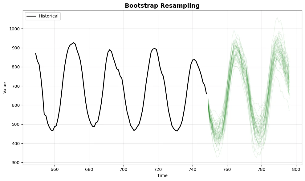 - Bootstrap - Non-parametric resampling from actual residuals